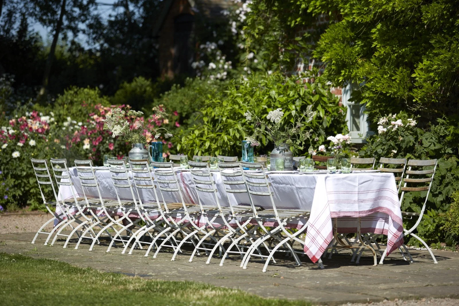 The walled garden captures the best of the evening sun and is a great place to relax and have a drink, and when the Wisteria is out it offers a beautiful backdrop for long lunches outside.